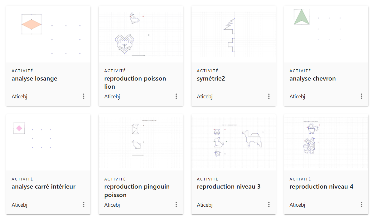 - analyse de figures : les élèves observent et analysent une figure. Ils doivent trouver des points d'intersections avec des segments non apparents pour au final reconstruire la figure. Cela passe par une phase de verbalisation pour expliciter la démarche et utiliser le vocabulaire de géométrie.