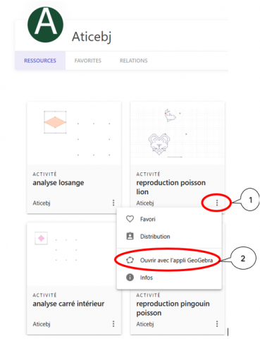 Nous conseillons d'utiliser la version 6 geogebra qui a l'avantage d'avoir exactement la même interface sur la version tablette, en ligne via un navigateur ou installée en local sur windows, linux, mac.