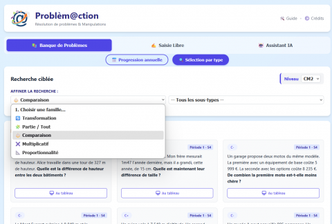 Source : La banque de problèmes utilisée par Problem@action est issue des travaux de la mission mathématiques de l'Isère, disponible sur mathematiques38.web.ac-grenoble.fr
